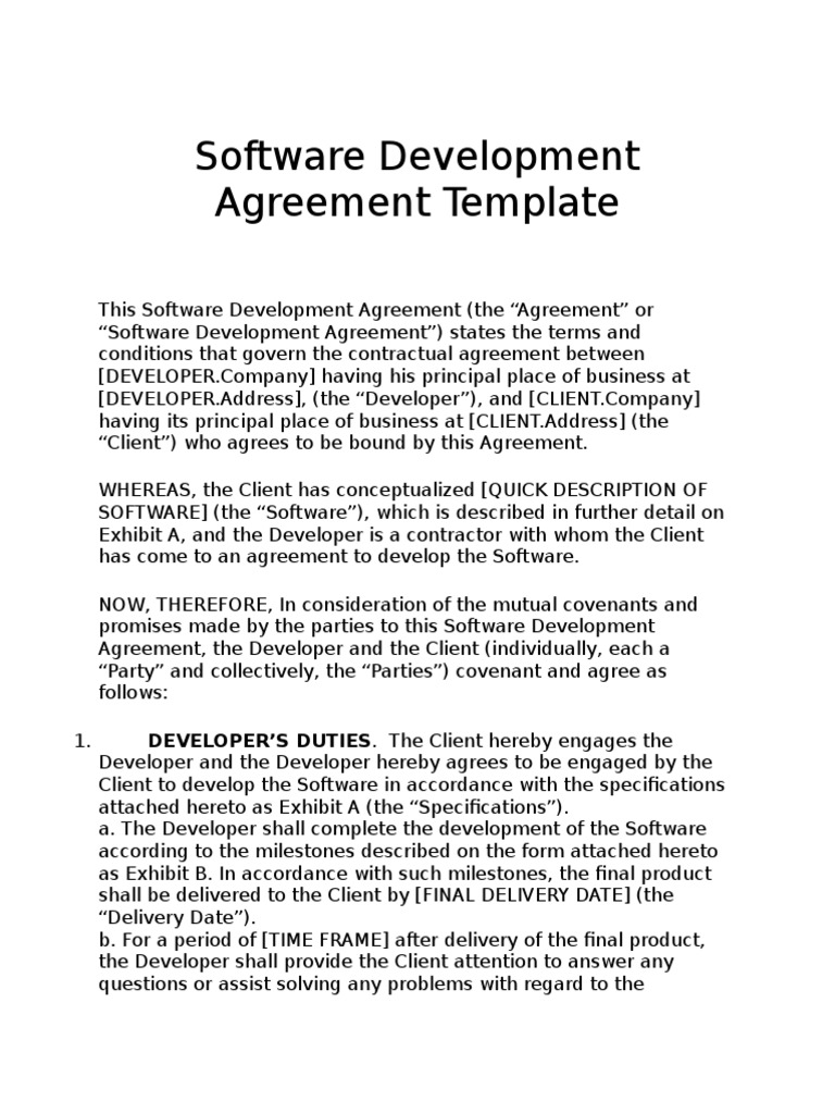 Software Development Agreement University Developing . Agreement Template This Software Development Agreement (The Agreement Or Software Development Agreement) States The Terms And Conditions That Govern The Contractual Agreement Between Developer.company Having His Principal Place Of Business At Developer.address.