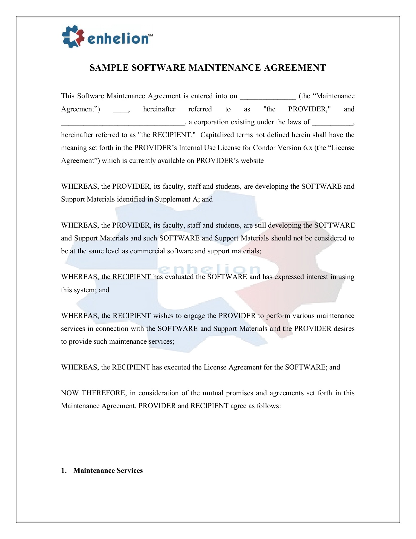 Download Software Maintenance Agreement Sample Background. This software maintenance agreement is entered into as of agreement.createddate between sender.firstname sender.lastname (software owner) and provider.firstname provider.lastname (service provider) furthermore known as the parties. The core maintenance services covered are the provision and/or application of software updates and upgrades. If you're the one who owns a software support company or you're an independent software contractor, make sure you have a paper trail. It's great that you're about to sign on a new. Maintenance contract for microcomputers and printers. Maintenance contract is an agreement between two parties that is put in writing, where one party is responsible for maintaining or taking care of the asset or property of the other party. Pdffiller provides a wide variety of multifunctional tools that help to fill software maintenance. A maintenance contract is a contract agreement between two parties, wherein the service provider adheres to do the duties of maintaining the goods, either a building software maintenance agreement template. Get 1,900+ templates to start, plan, organize, manage, finance and this software maintenance agreement template has 8 pages and is a ms word file type listed under our software & technology documents. As software maintenance agreements go, this one is short, straightforward and easy to use. Software maintenance agreement sample online for free. This agreement includes all those provisions that you might expect to find in any. Every progressive person is searching for a solution that will eliminate papers and speed up the document workflow. A software maintenance agreement builds a bridge between your business needs and a software professional. Software maintenance agreement contract sample.