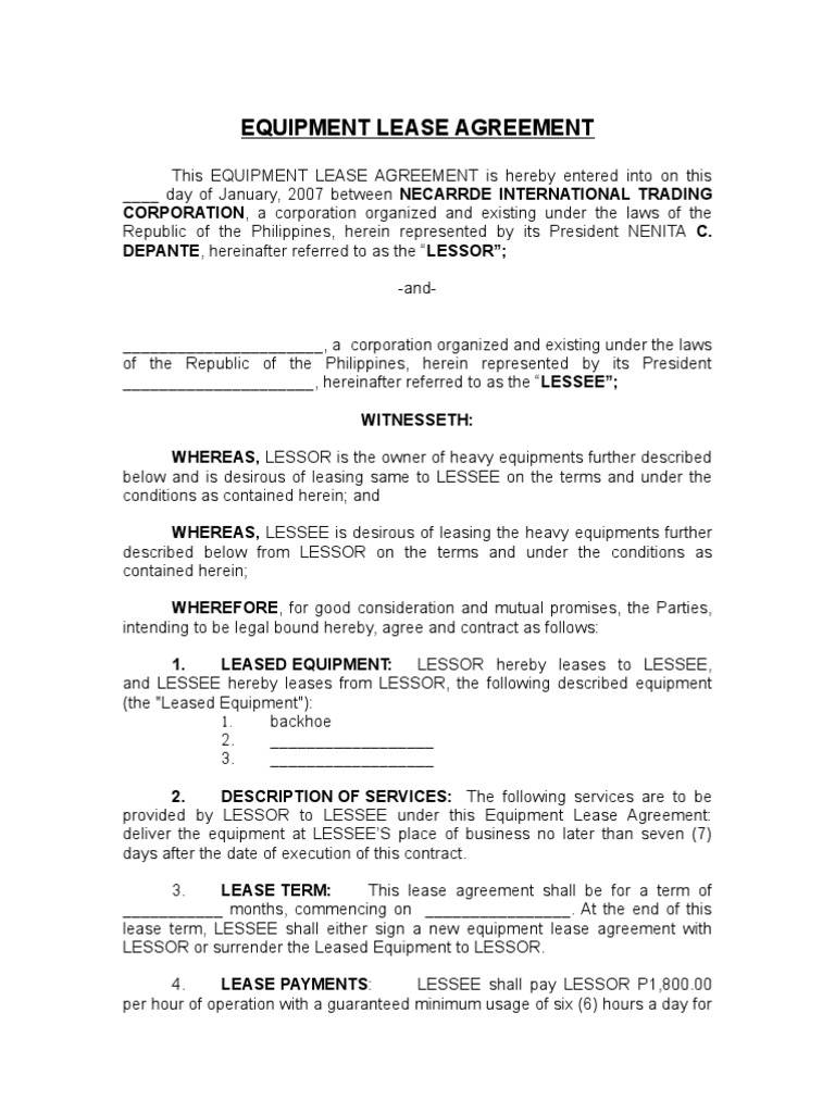 13 Equipment Lease Agreement Examples Pdf Doc Examples : Download A Free Residential Lease Agreement Template For Microsoft Word.